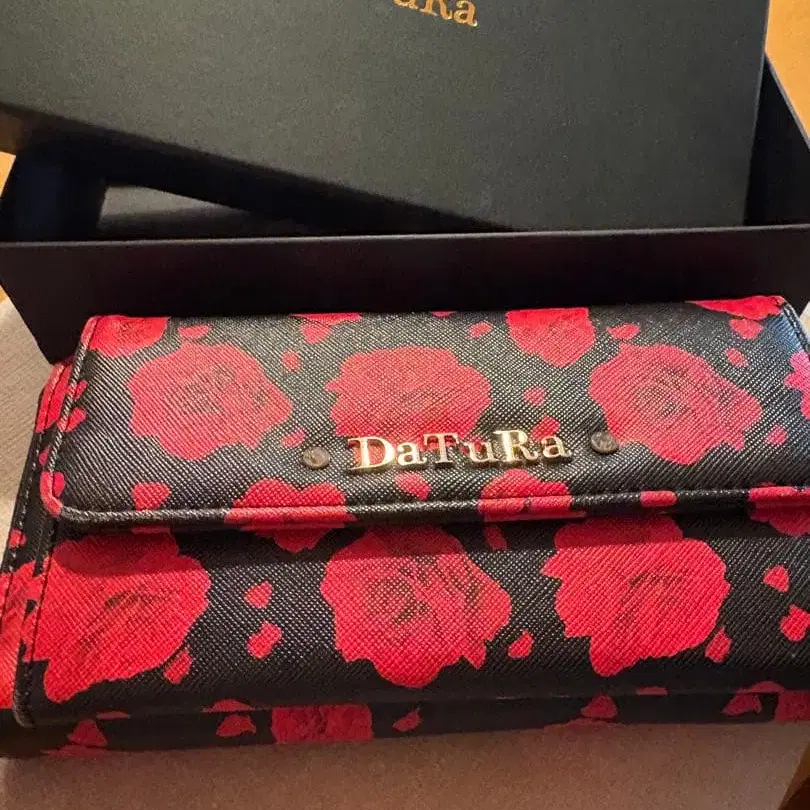 DaTuRa 빨간 꽃무늬 장지갑 박스 포함