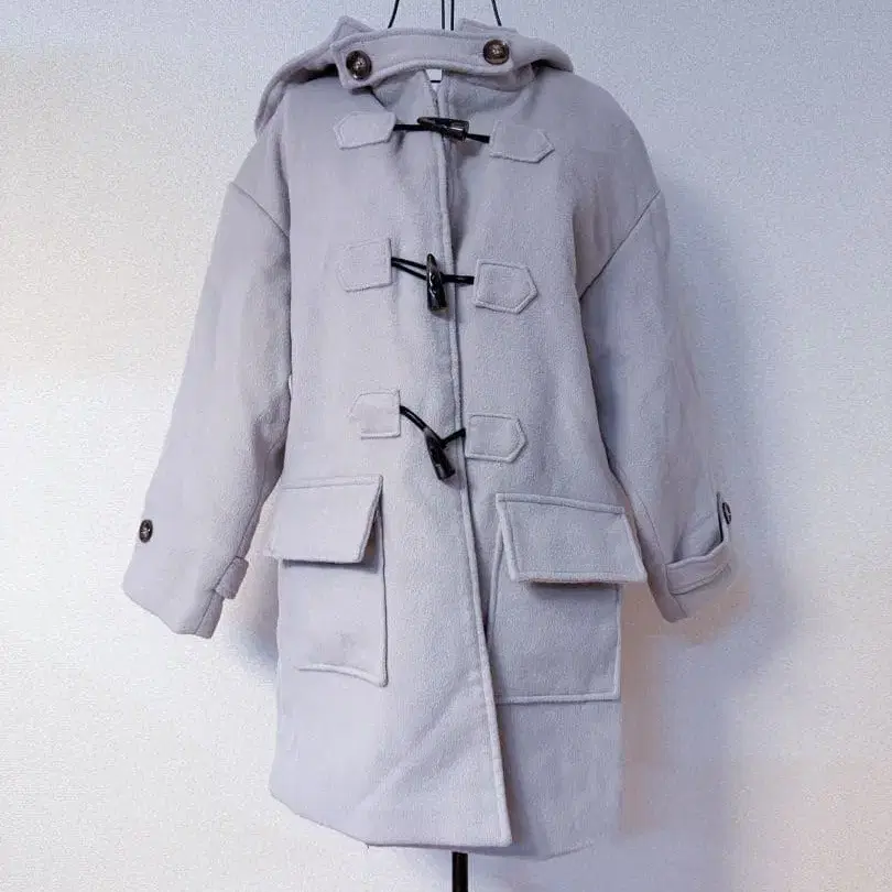라이트 그레이 더플 코트 후드 부착