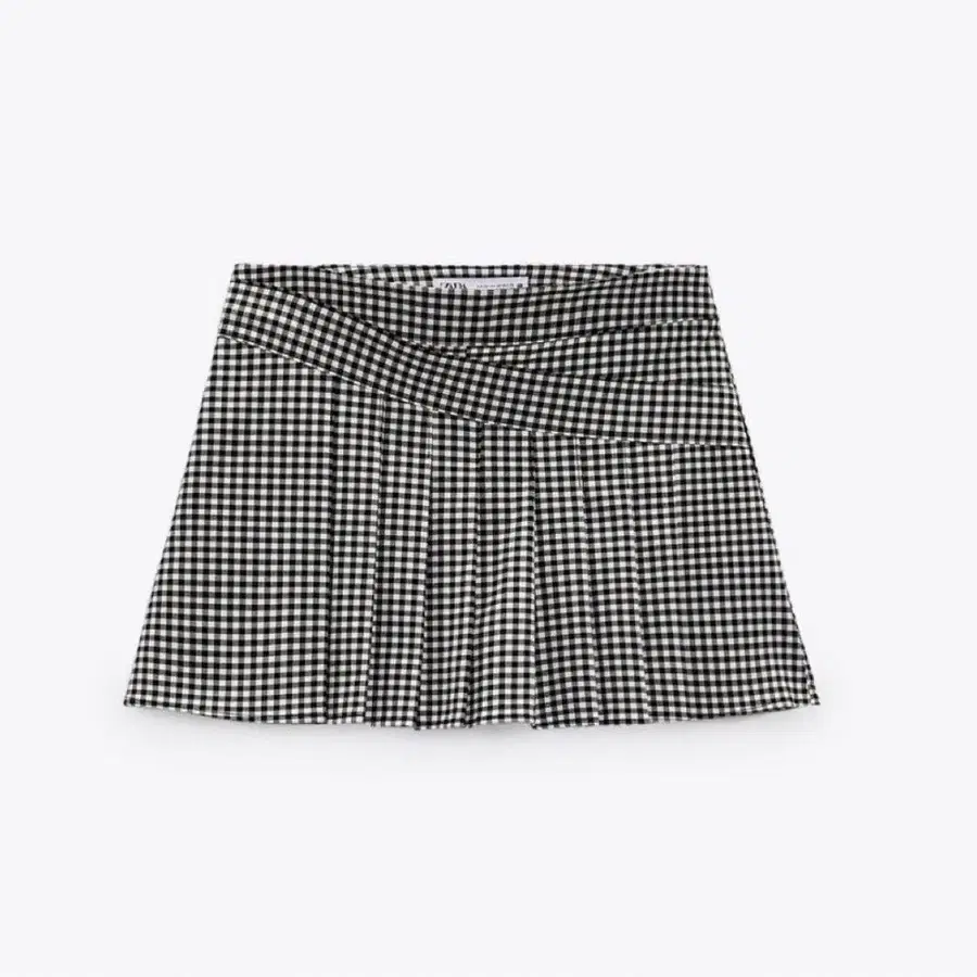 ZARA 박스 플리츠 깅엄 체크 스코트