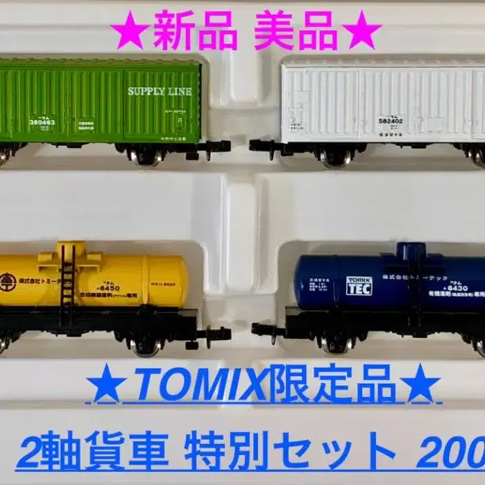 ☆ 시험 체크 시 통전만 한, 새상품, 새상품급입니다 ☆ ● 동력차는 없습니다. ● 커플러는 아놀드 타입입니다. [ 부탁 사항 ] 모든 상품을 잘 살펴보았지만, 누락 등이 있을 수 있습니다. 확인하고 싶으신 부분이나 사항이 있으시다면, 댓글란에서 문의 및 질문 부탁드립니다. [ 보관 상황에 대하여 ] ※ 이미지 2개, 참조해 주세요. 목조 가옥 2층의 모형 전용 레이아웃 룸에서 스틸제 컨테이너(사무실용) 내에 수납 보관하고 있습니다. 창문은 닫고, 셔터를 내려 항상 차광하고 있습니다. 이하, 메루카리(주최자) AI, 작성 문구. TOMIX의 한정판 2축 화차 세트, 4량으로 다채로운 컬러. - 세트명: Two-axle Wagons Special Set 2001 - 브랜드: TOMIX - 차량수: 4량 - 모델: 와무80000형, 타무6000형 - 색상: 그린, 화이트, 노랑, 파랑 방문해 주셔서 감사합니다. 차량 종류 - 화차 제조사 - TOMIX(토믹스) 종류 - 화차 세트