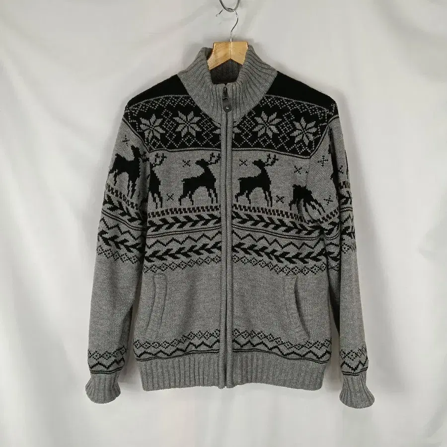 노르딕 무늬 드라이버 니트 풀 집업 M 상당 겨울 니트