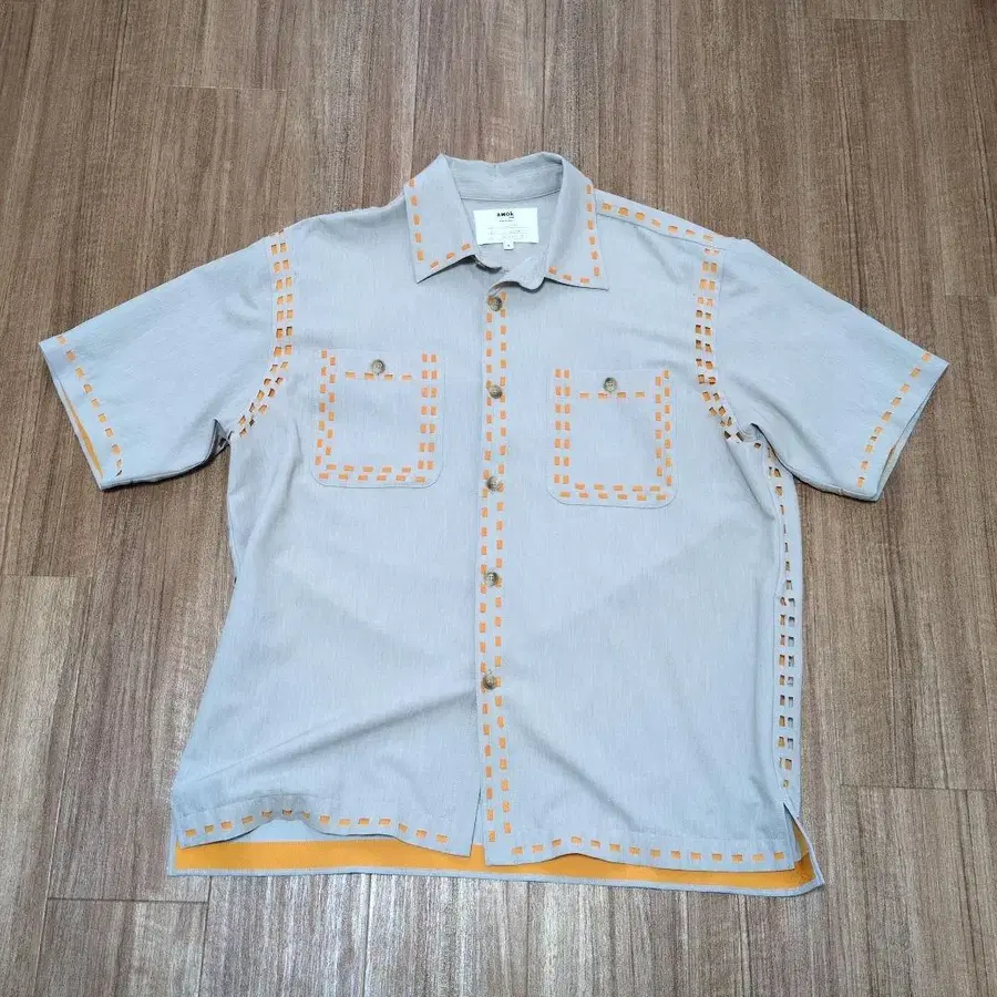 amok 반팔 셔츠 M 그레이 오렌지 스티치