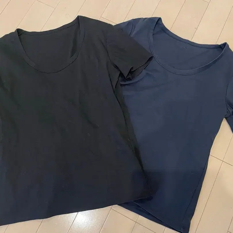아뉴앙스 U넥 티셔츠 2장 세트 네이비 블랙