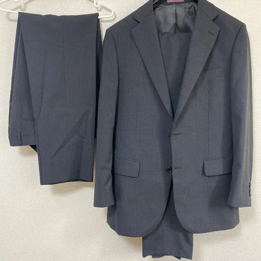 남성용 수트 상하의 세트 그레이 스트라이프 비즈니스 정장 팬츠 2장