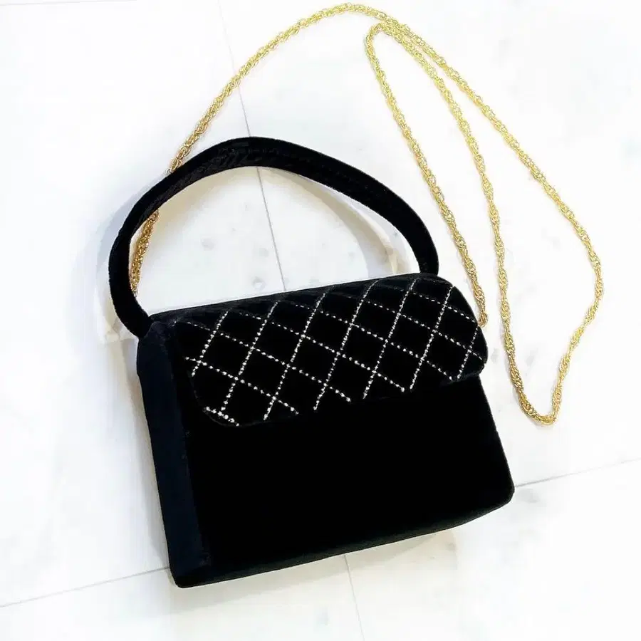 자동 번역되었어요. 원문보기블랙 벨벳 원단에 반짝이는 금실 스티치가 장식된 2way 파티 백입니다 ꕤ ︎ ·͜· ︎