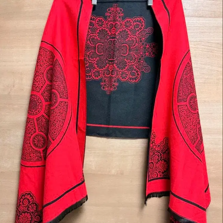 빨간색과 블랙의 기하학 패턴 스톨 숄 (리버서블)