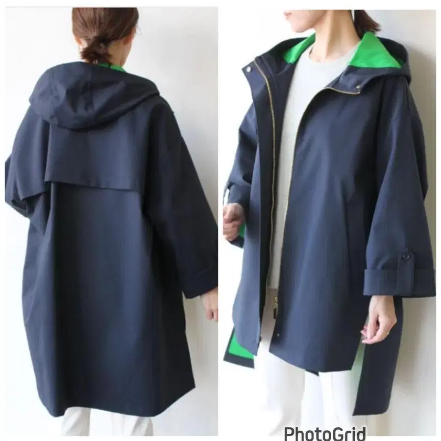 PASSIONE 바이컬러 후디드 코트 / 네이비 x 그린 38