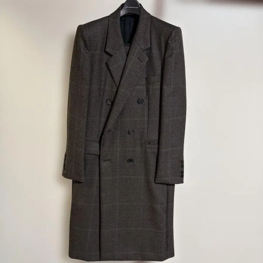 체크 무늬 더블 브레스트 체스터 코트