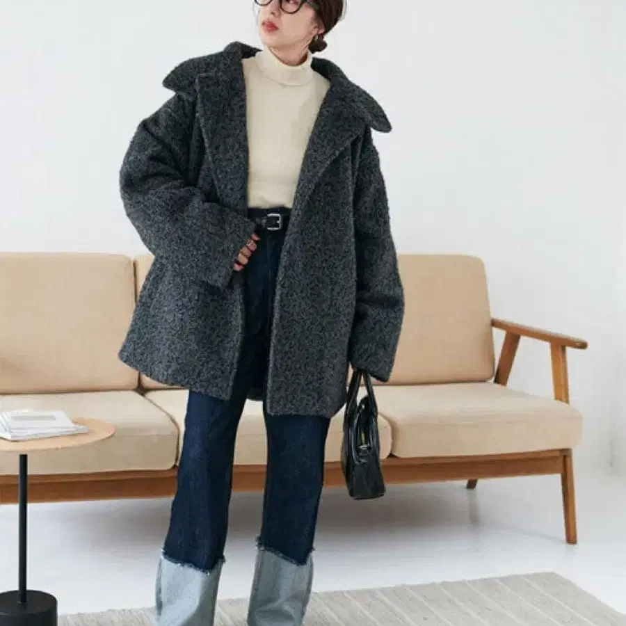 Discort MIX사 부클레 미들 스탠드 코트 그레이