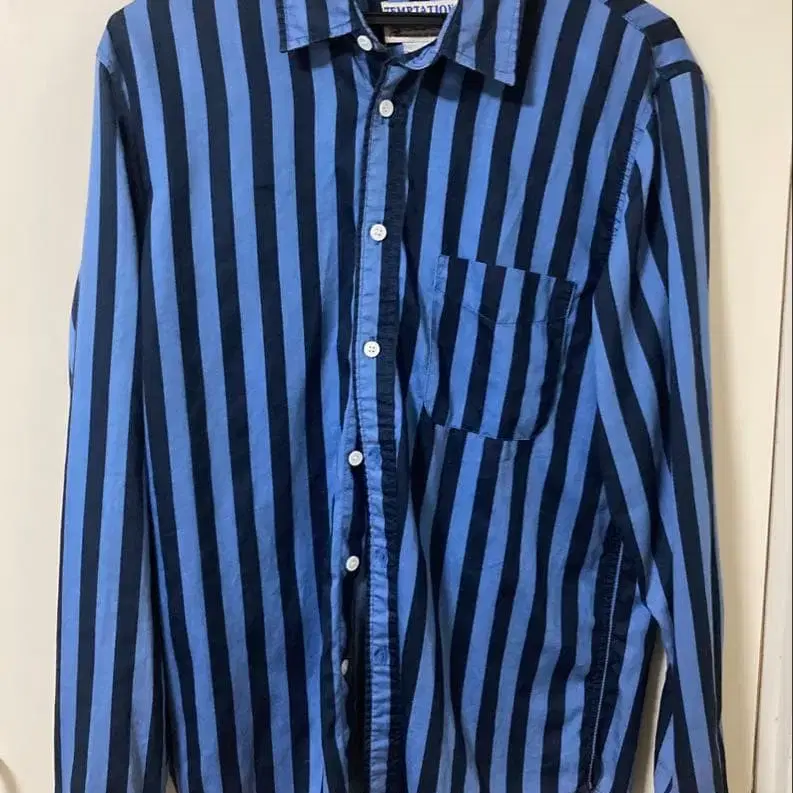 스트라이프 셔츠 웨즈데이 블루 블랙 파랑 블랙 세로 스트라이프 코튼 면