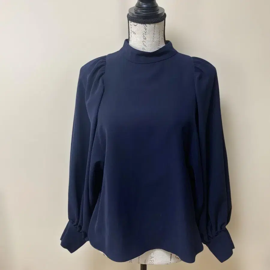 [ 새상품급 ] aquagirl 네이비 하이넥 퍼프 슬리브 셔츠 36