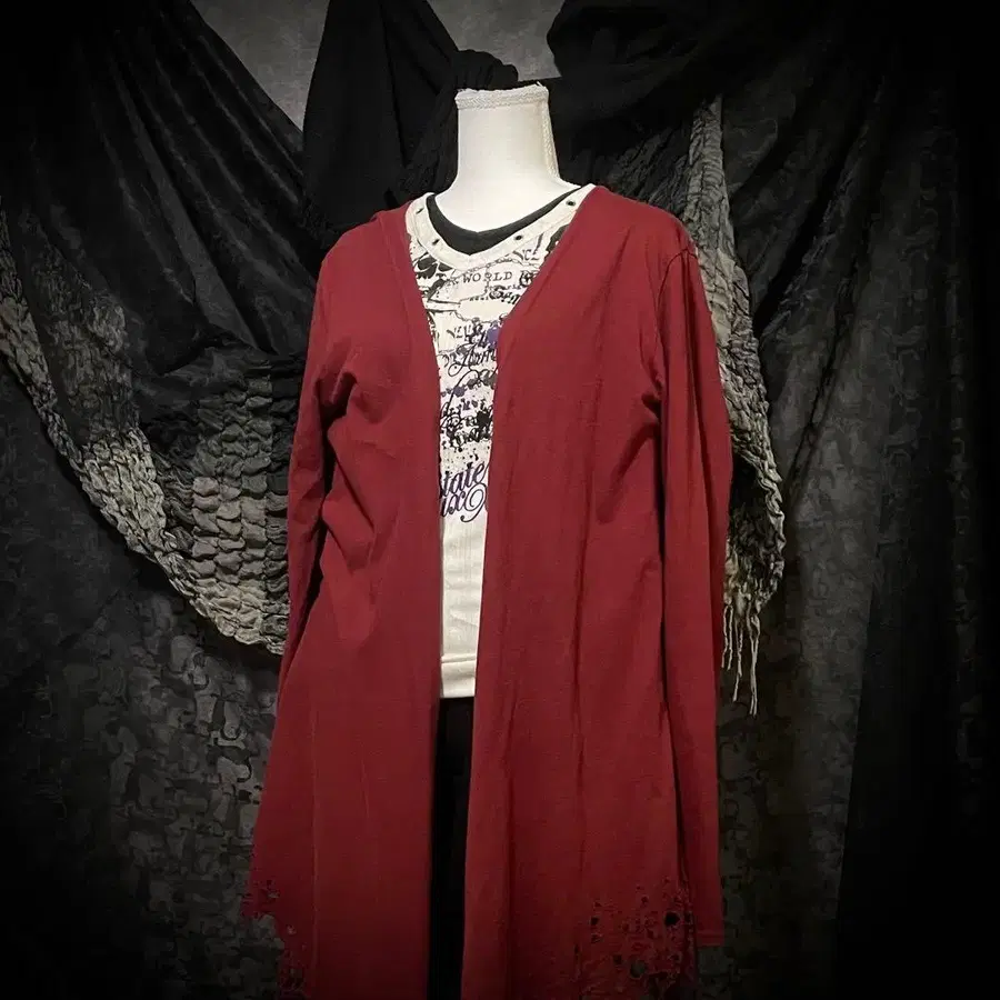 y2k 그런지 데미지 가공 롱 가디건 빨간색 V계 헤이세이계 아카이브