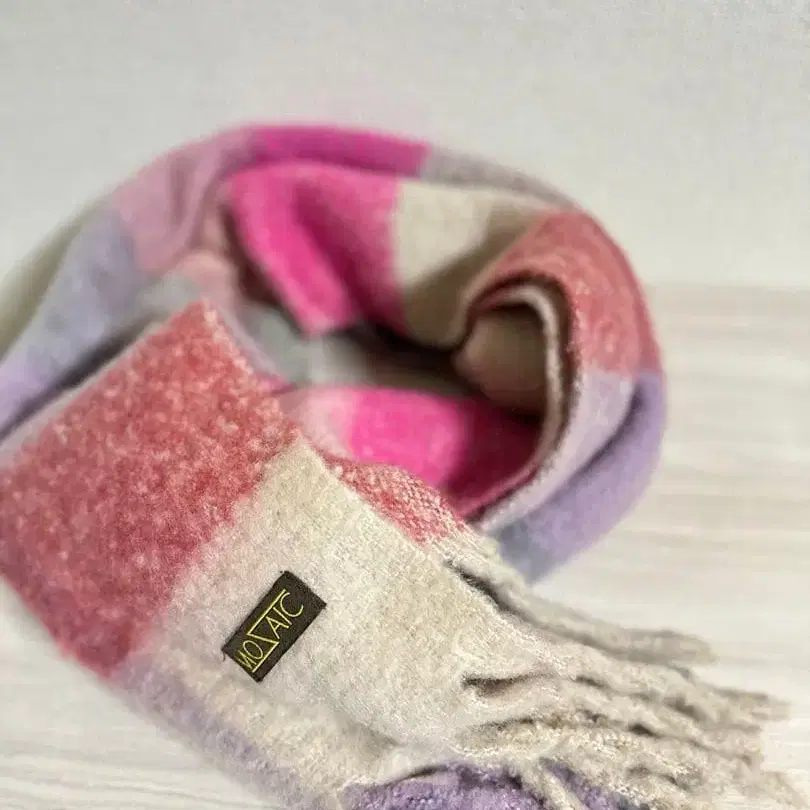 MOSAIC 체크 무늬 머플러 울 혼방 미사용