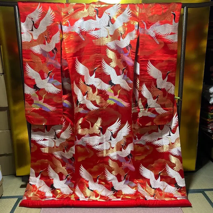 우치카케 이로 우치카케 순수 실크 니시진 비단 천 마리 학