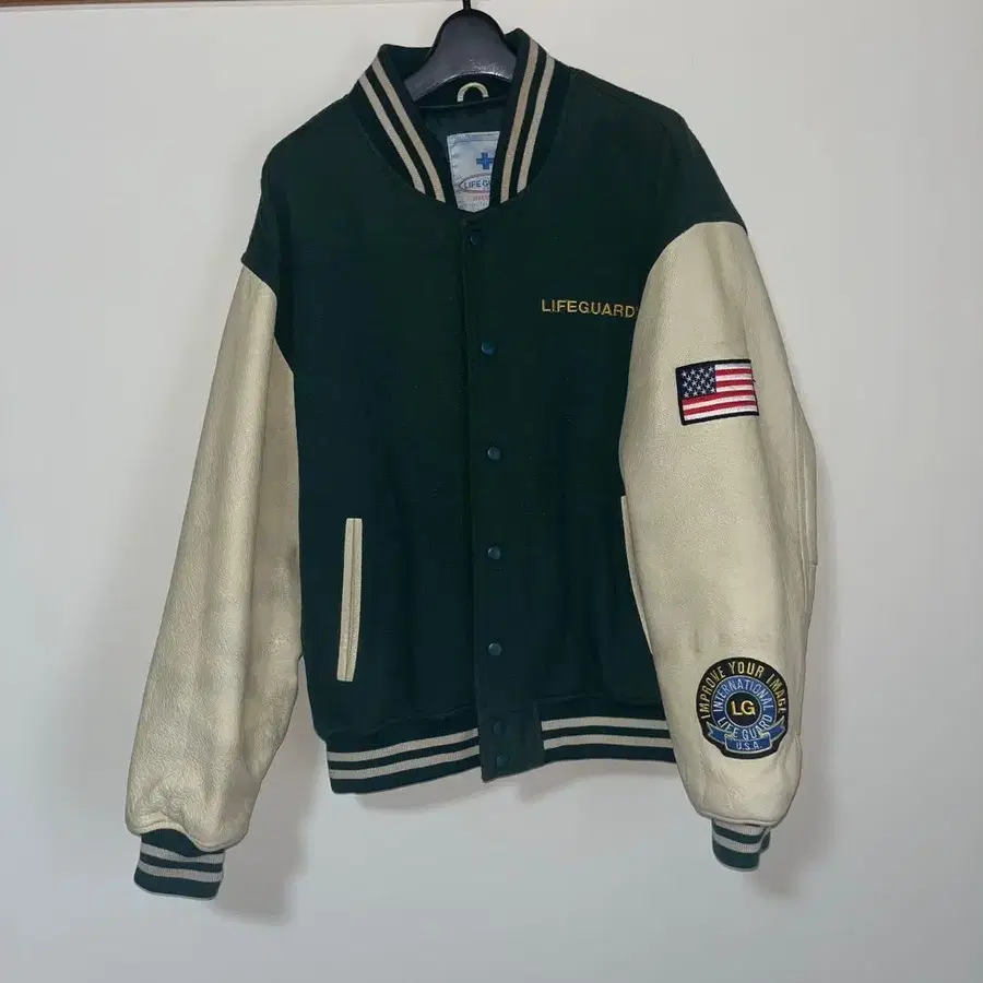 LIFEGUARD 바시티 자켓 그린/아이보리 구제 의류 아메카지