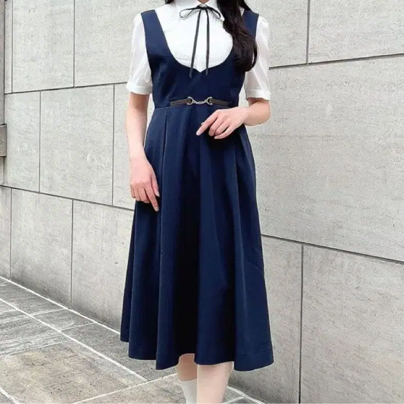 허리의 체인 비트 사용이 코디를 잡아주는 오버롤 스커트.