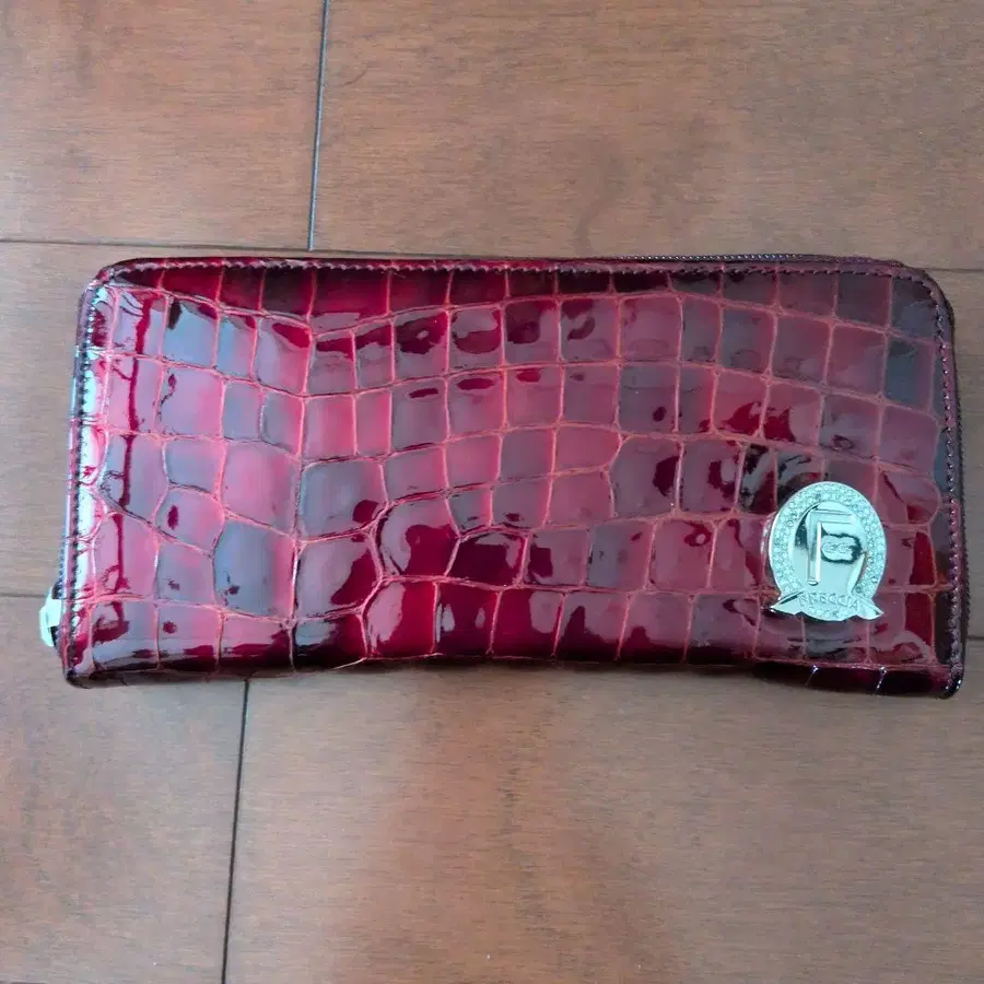 소가죽 빨간색 에나멜 장지갑 크로커다일풍