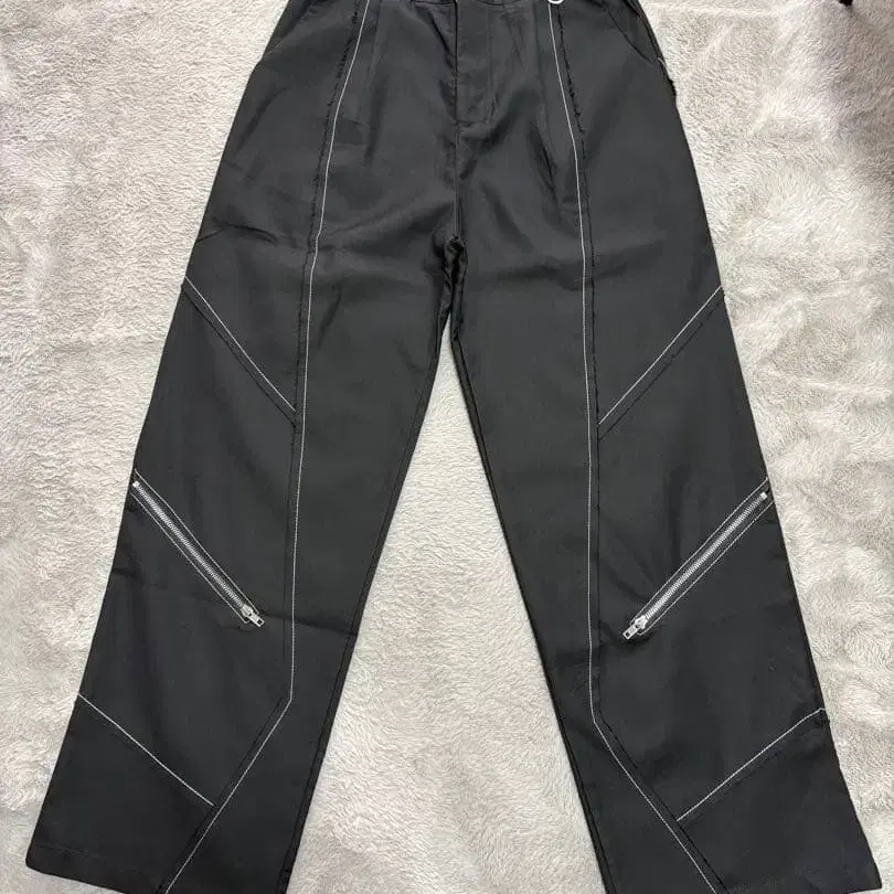 ALUDE 지퍼 팬츠 화이트 스티치 디자인 팬츠