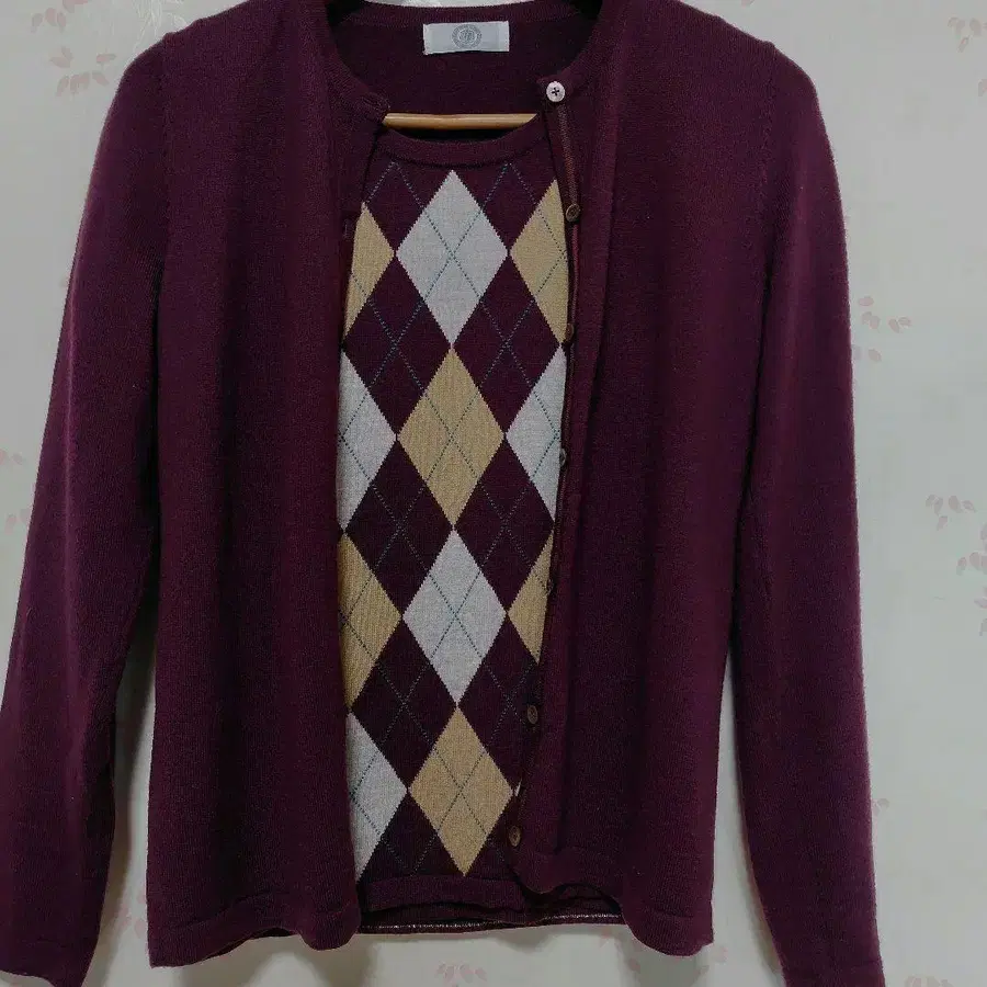 J. 프레스 앙상블 아가일 무늬 울 가디건 울 반팔 스웨터