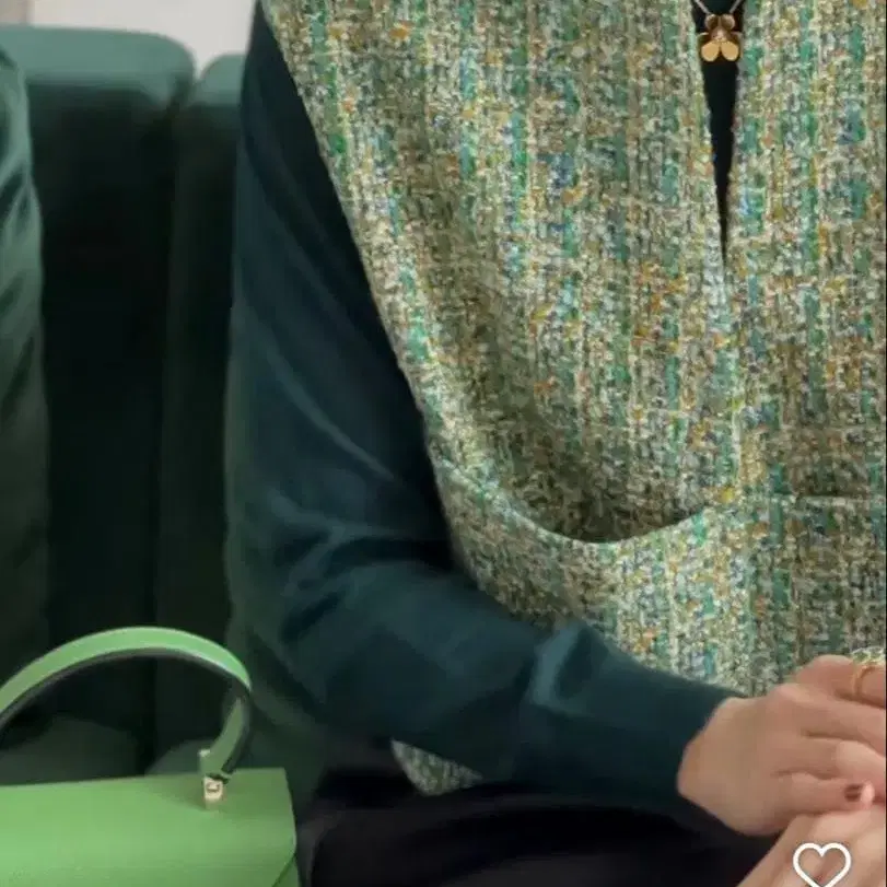 도착한 지 얼마 안 된 이번 시즌 이미 완판된 베스트입니다. 색상은 그린 공식 ■ 디자인 표정이 풍부한 실을 다색으로 짜 올린 원단은 깊이 있는 음영으로 엘레강트한 리듬감을 느끼게 합니다. 컴팩트한 기장감으로 하의를 가리지 않으며, 원피스에도 툭 걸치기만 하면 세련된 레이어드 스타일이 완성됩니다. V자 컷의 넥은 레이어드해도 너무 답답해 보이지 않는 내추럴함을 연출합니다. 프론트에는 빅 포켓을 배치하여 적당한 악센트와 입체감을 더했습니다. 포켓 안쪽과 플라켓의 안감에 컬러별 그로그랭을 덧대어 입고 벗을 때도 아름답게 보이도록 했습니다. 은은한 디테일이 품격을 더하며 오래도록 사랑할 수 있는 단정함을 만들어냅니다. 몸통 부분의 프론트 후크는 골드로 은은한 악센트를 더했습니다. ■ 소재 짜임의 요철이 아름다운 트위드 원단. 너무 두껍지 않은 가벼움으로 코트 안에도 입을 수 있는 쾌적함입니다. 블랙, 화이트, 그레이, 네이비에 브라운을 살짝 더한 시크한 어른 배색의 블랙은 어떤 컬러와도 잘 어울리며, 입기만 해도 스타일링이 정돈됩니다. 그린, 블루, 오렌지를 짜서 겹쳐, 프레쉬하고 모던한 인상의 그린. 옷차림을 확 밝게 보이게 하는 화려함과 따뜻함을 겸비한 컬러입니다. 라이트 핑크부터 퍼플의 농담이 부드럽게 녹아들어 달콤함과 품격이 공존하는 핑크. 골드 실이 은은하게 빛나 여성스러운 화려함을 더합니다. 컴팩트하게 접어 발송하므로, 접힌 자국 등은 양해 부탁드립니다. # 세븐텐 # 베스트