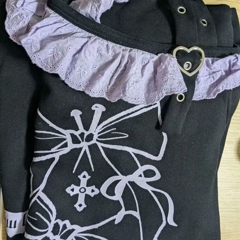 리본 프린트 오프숄더 긴팔 상의
