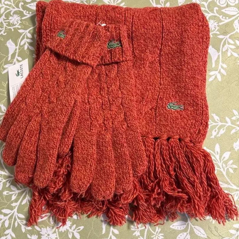 LACOSTE (라코스테) 니트 장갑 + 머플러 세트