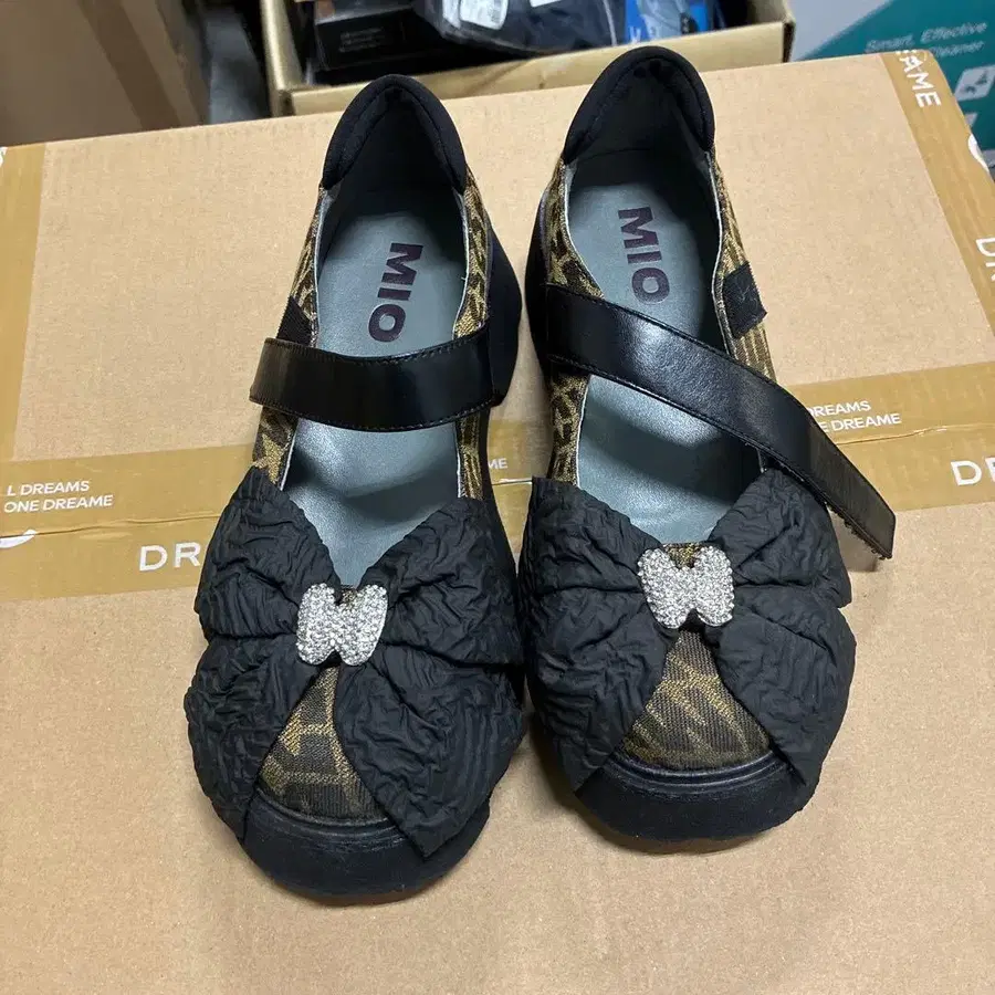 미사용 MIO 리본 포함 플랫슈즈 블랙 베이지