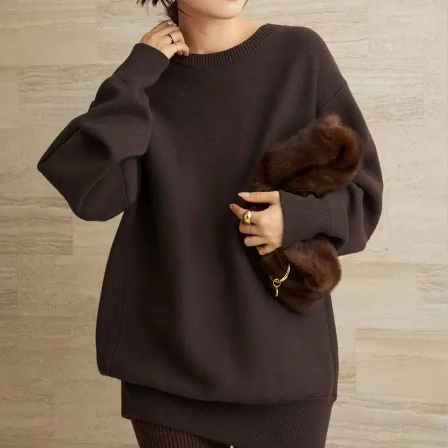 성인 캐주얼 스타일에 활용하기 좋은 브라운 맨투맨.