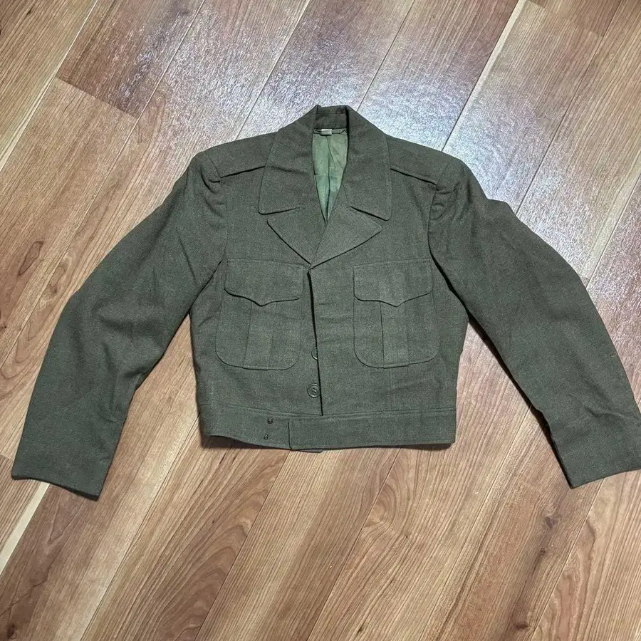 빈티지 올리브 그린 크롭 밀리터리 자켓