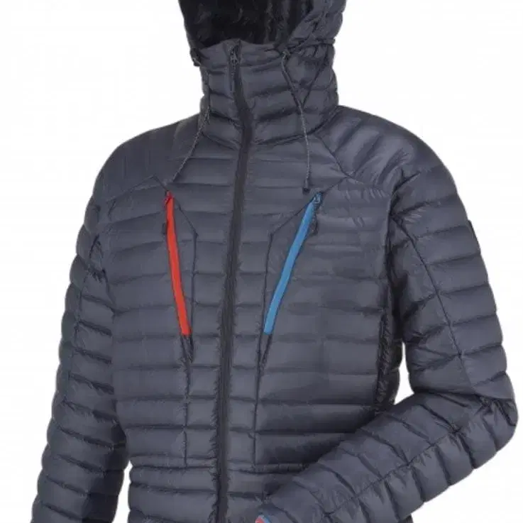- 특징: 후드 부착, 다운 자켓, 지퍼 포켓 (빨간색과 파랑색)