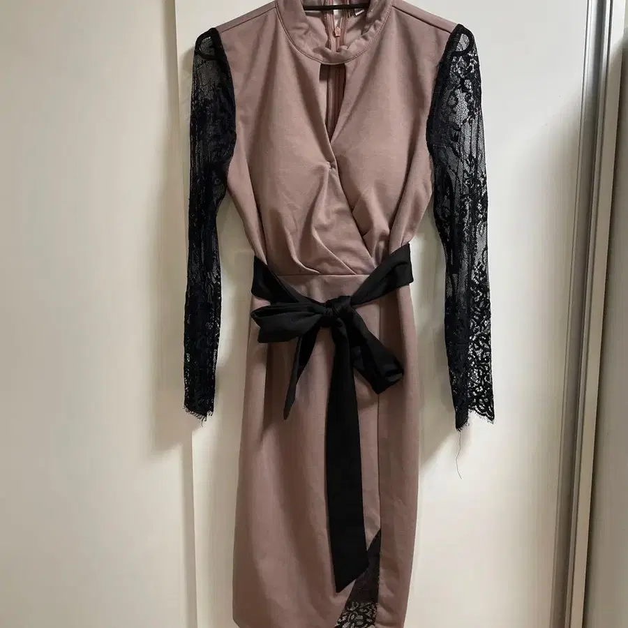 쥬얼스 드레스 레이스 소매 리본 포함 랩 드레스