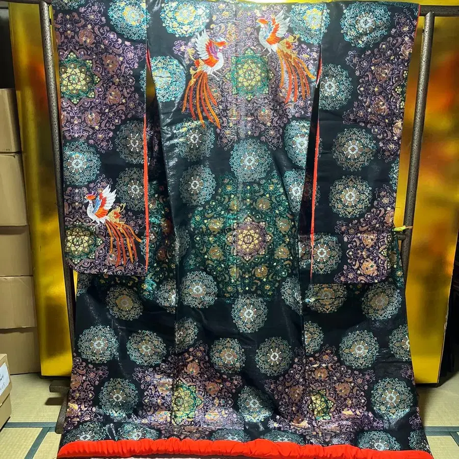 우치카케 이로 우치카케 순수 실크 니시진 비단 봉황 화문