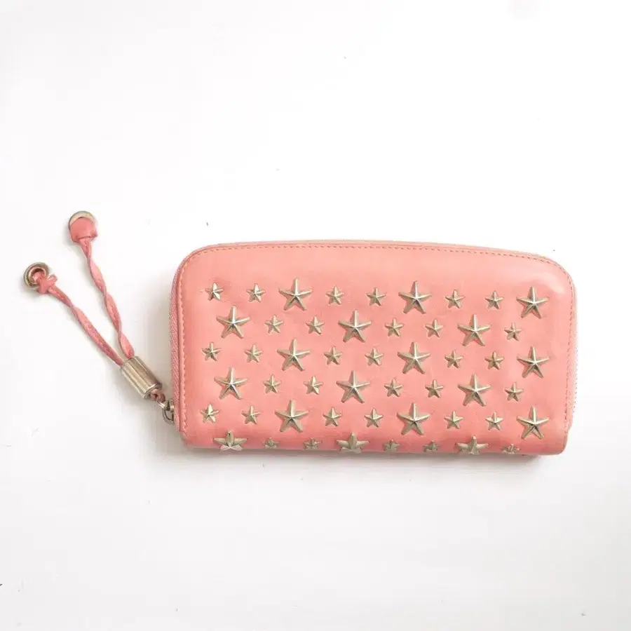 이탈리아제! 레어 컬러! 지미추의 스트로베리 핑크 계열 천연 가죽 소재에 실버 골드 계열의 별 모양 스타 모티브 스터드가 달린 디자인이 악센트가 되어 고급스러운 ♪ 지미추 스터드 장식 라운드 지퍼형 장지갑이 됩니다.