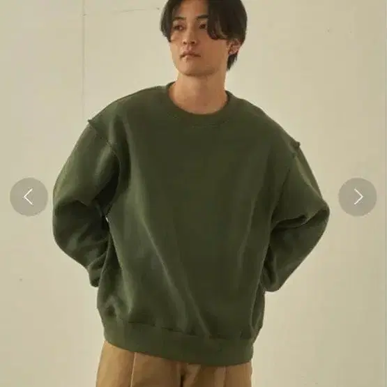 후지하루 유스케 씨 프로듀스 브랜드 YOEL의 인사이드 아웃 맨투맨입니다. 색상은 그린 많이 착용하지 않아 얼룩 등은 없을 것으로 생각됩니다. [ 상품 상세 정보 ] [소재] 코튼 50%, 폴리에스테르 50%를 사용했습니다. 표면은 천축 편직으로 촉감이 좋고, 안쪽은 기모 처리하여 털이 긴 섬유가 보송보송하여 방한성과 착용감이 뛰어난 소재감입니다. 380g/m²의 비교적 두께감 있는 무게의 소재를 선정하여 오버 사이즈 실루엣에 적합한 자연스러운 드레이프성이 있는 소재가 되었습니다. [디자인] 넉넉한 실루엣으로 제작한 루즈 맨투맨. 전체적으로 넉넉하게 제작하고, 어깨를 내려 더욱 루즈한 느낌을 더했습니다. 암홀부터 소매 끝까지의 스티치를 안쪽으로 사용하여 원 포인트 디자인을 주었습니다.