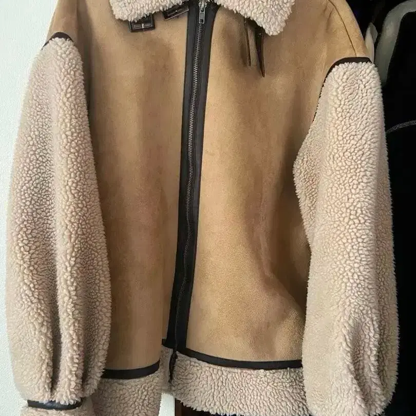 무스탕 코트 베이지 쉘파 퍼 보아 자켓