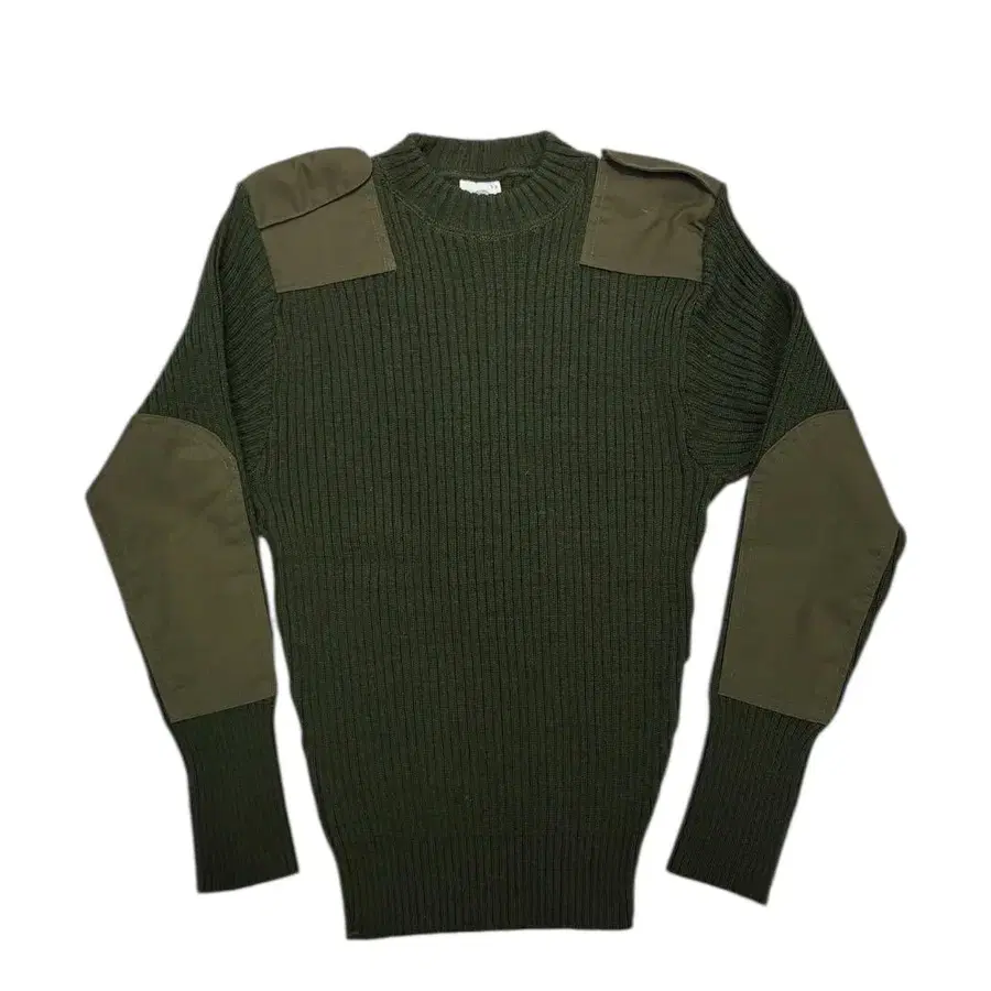 밀리터리 커맨드 스웨터 리브 니트 어깨 팔꿈치 패치 카키 계열