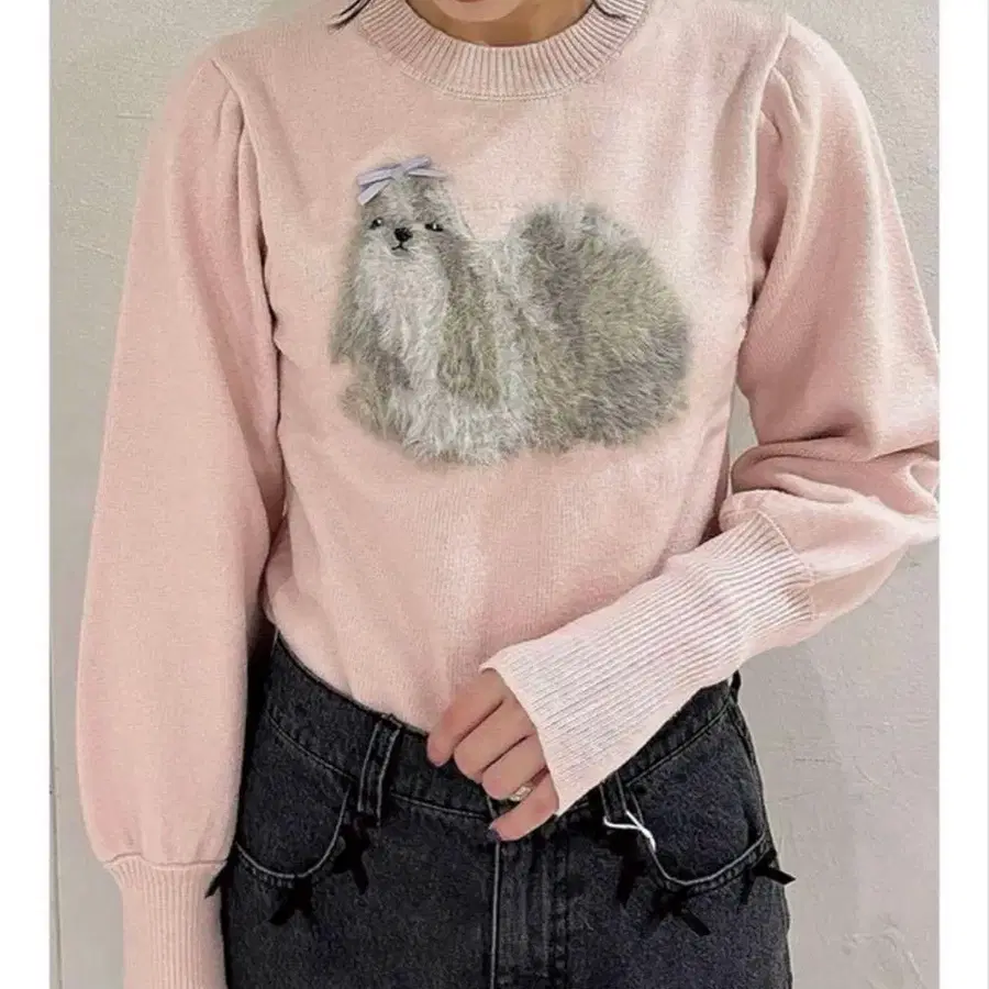 merry jenny 시츄 자수 장식 핑크 니트 스웨터