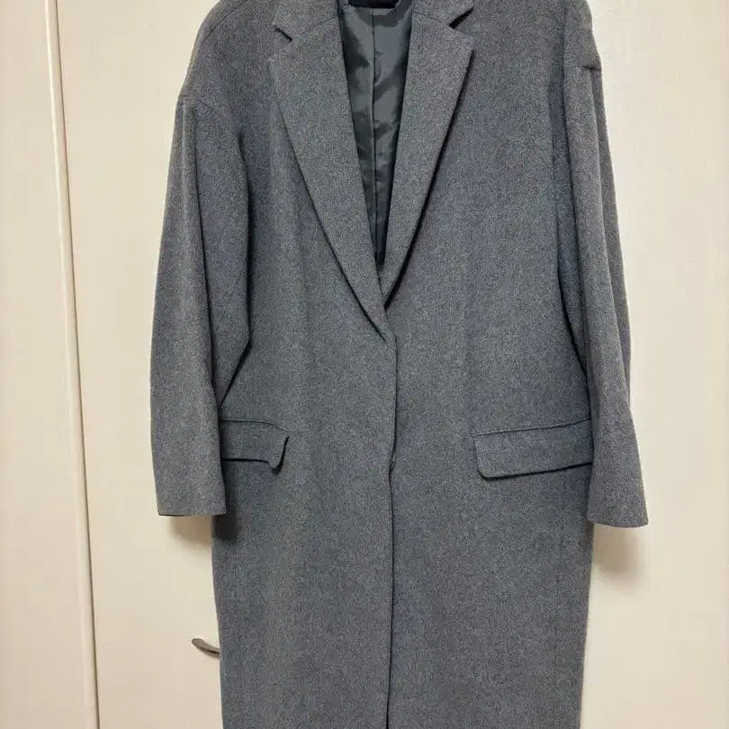 노블 그레이 오버 사이즈 체스터 롱 코트 울 캐시미어