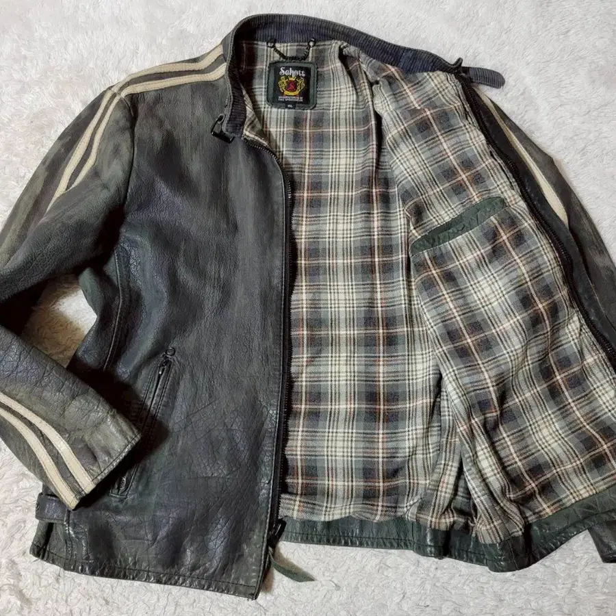 레어 2XL 샷 싱글 라이더 클래식 레이서 양가죽 카키