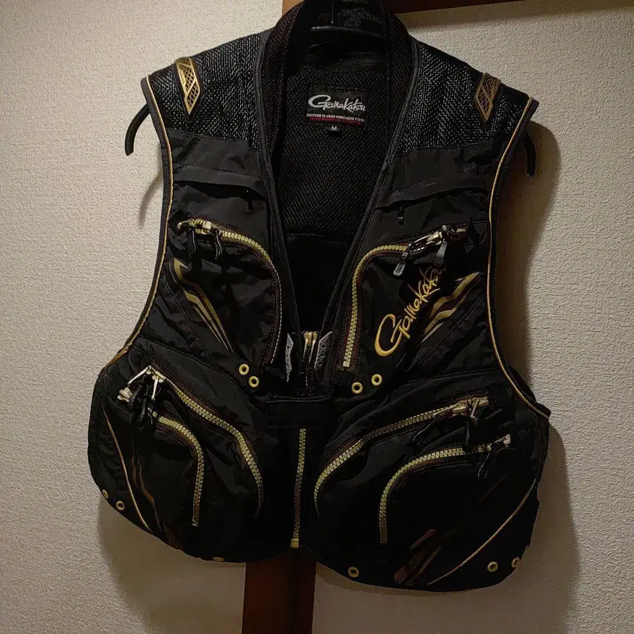 Gamakatsu 낚시용 조끼 M 사이즈 블랙/골드