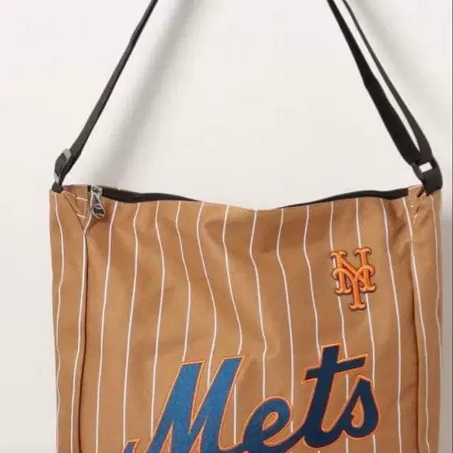 팀 로고가 포인트로 자수된 스트라이프 패턴의 메신저 백이 등장했습니다.