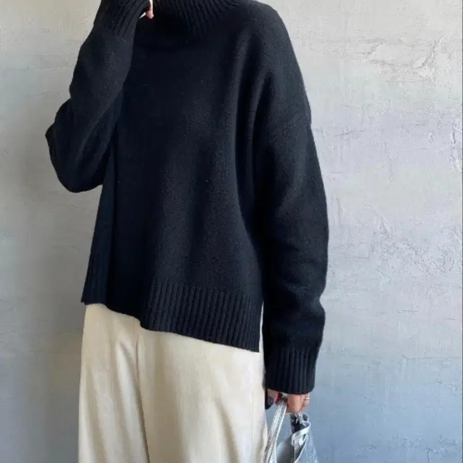 미즈이로 인드 하이넥 와이드 실루엣 니트 풀오버