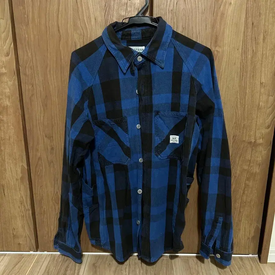 SASSAFRAS 파랑 블랙 체크 플란넬 셔츠