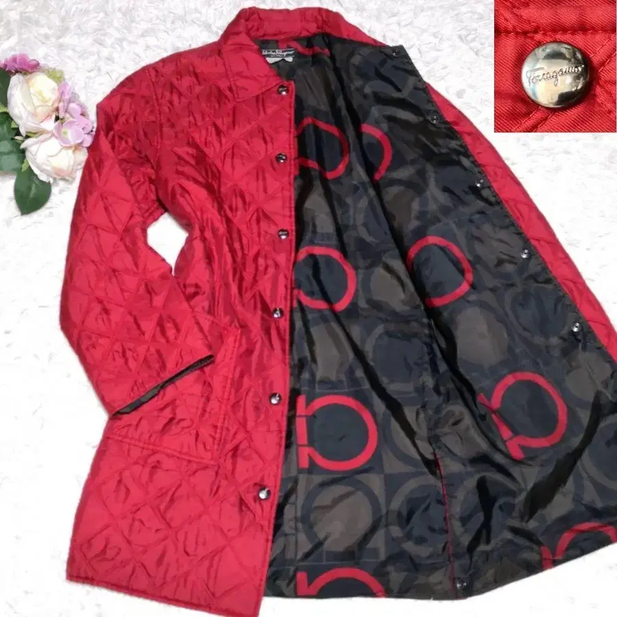 L 살바토레 페라가모 퀼팅 코트 은색 버튼 빨간색