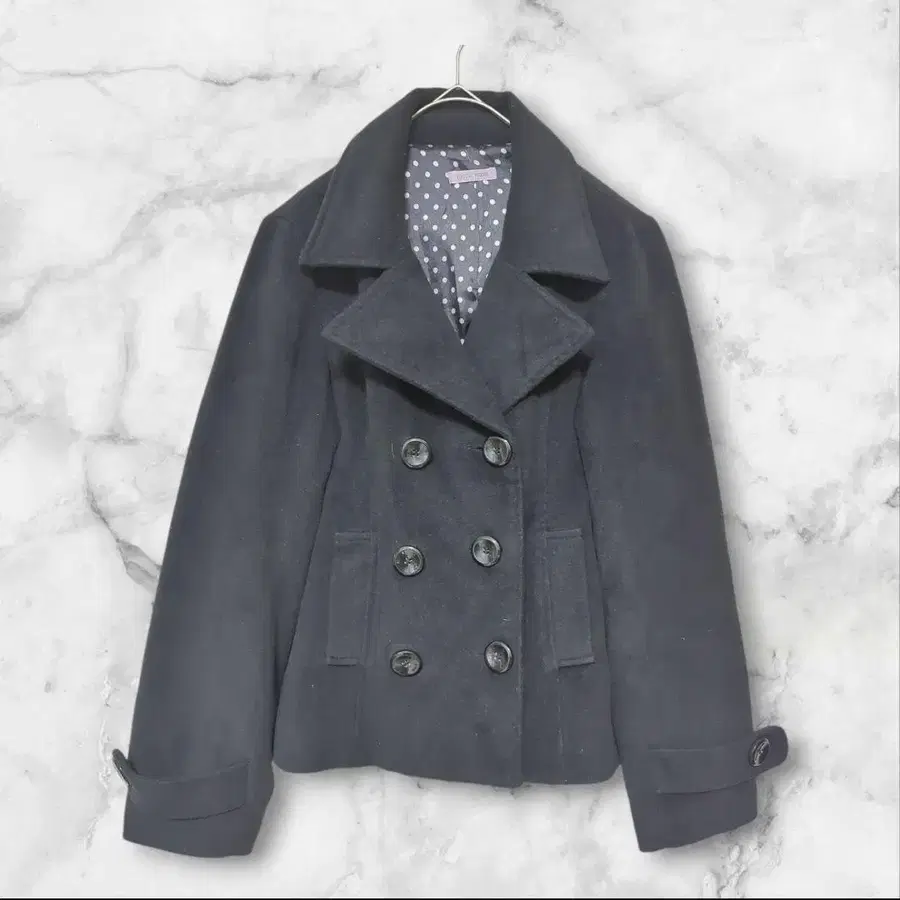 • Lui's 스탠드 카라 더블 브레스트 블랙 컬러 피 코트 L