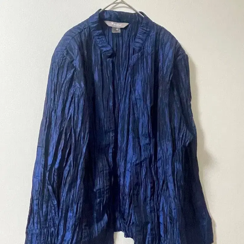 자동 번역되었어요. 원문보기다크 블루 색상의 플리츠 가공이 특징인 테일러드 자켓.