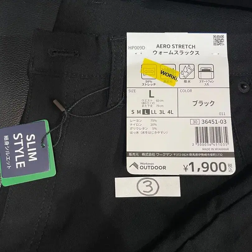 워크맨 HP009D 블랙 L 사이즈 3 웜 슬랙스