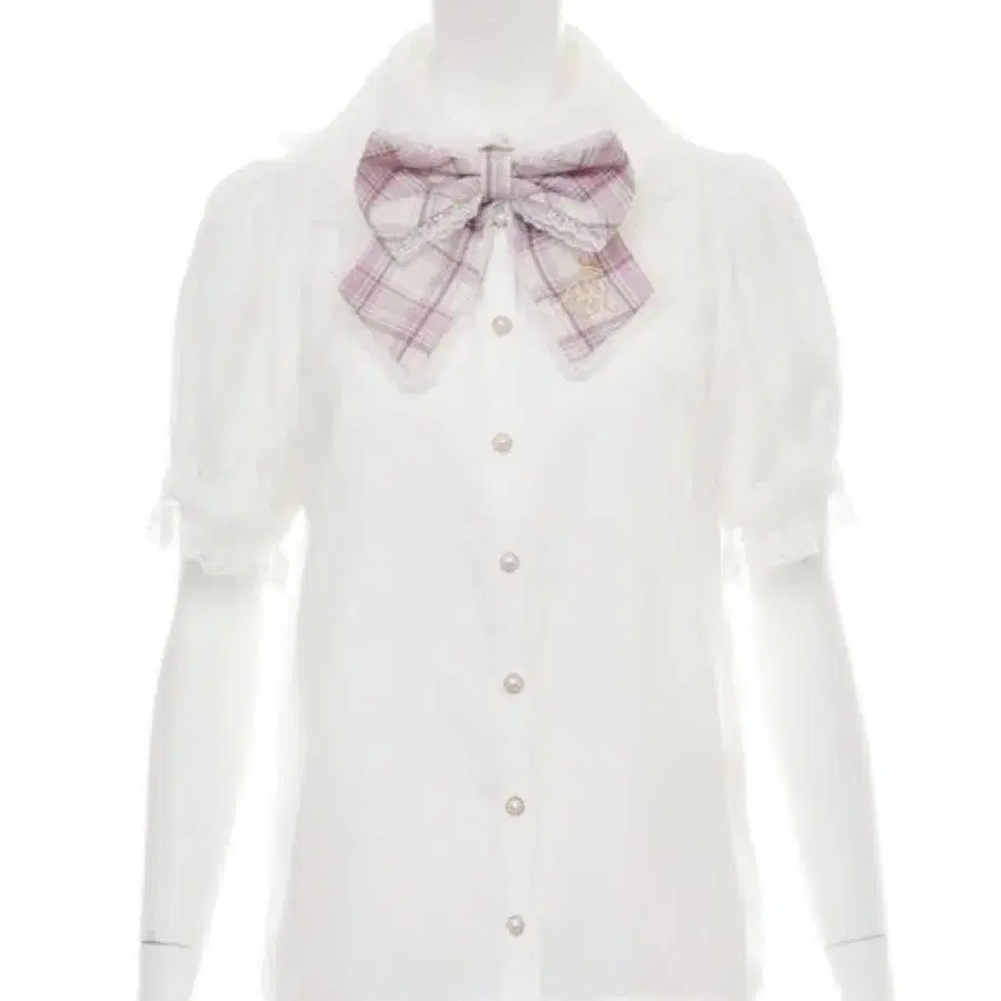 Secret Honey 프릴 리본 타이 부착 반팔 블라우스 핑크