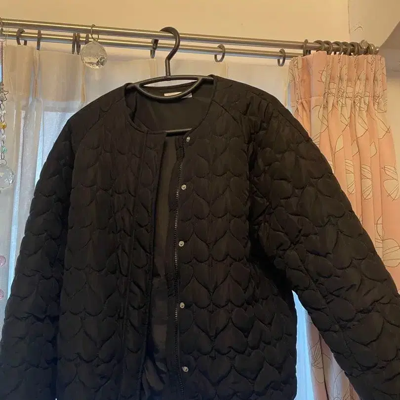 하트 무늬 퀼팅 자켓 F 사이즈 블랙