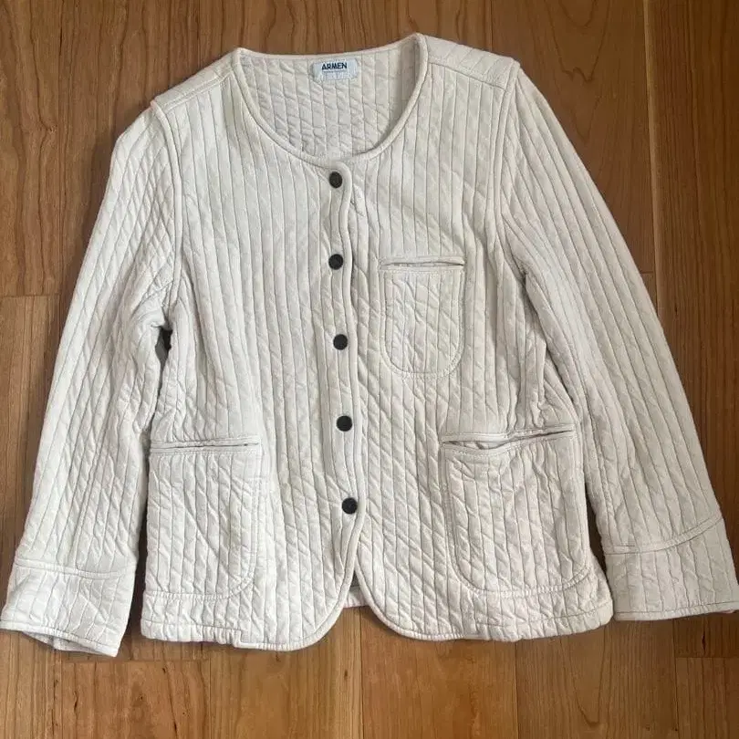 ARMEN 아이보리 퀼팅 노카라 자켓